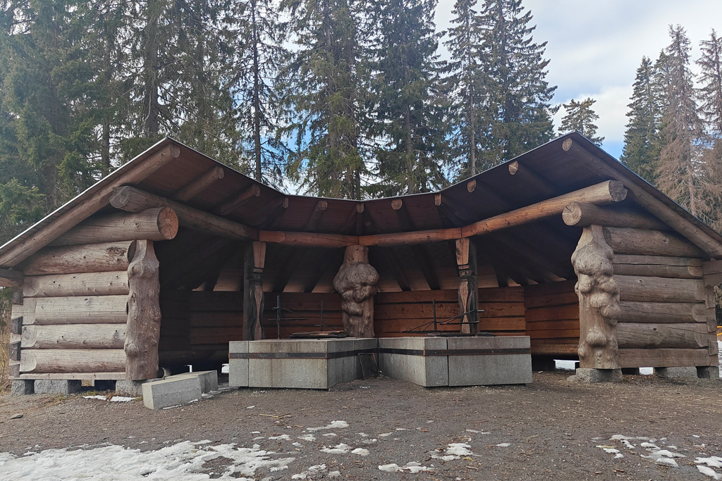 Vähän ennen laavua on parkkipaikka, missä kokoonnutaan yhdessä ja kävellään lyhyt pätkä laavulle.